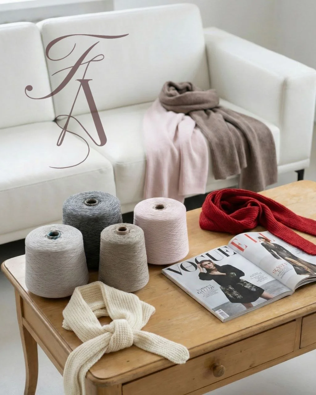 Un filamento di cashmere, tinto con pigmenti naturali, che attraversa ogni creazione come un'impronta segreta.