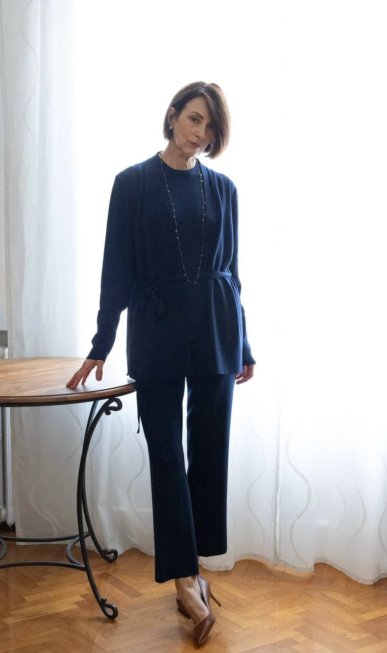 Ogni capo è pensato per esaltare la silhouette con linee pulite e texture morbide, perfetto per chi cerca un lusso discreto e senza tempo. La luce naturale diventa protagonista, riflettendosi sulle fibre pregiate e creando giochi di ombre e sfumature che rendono ogni outfit unico.