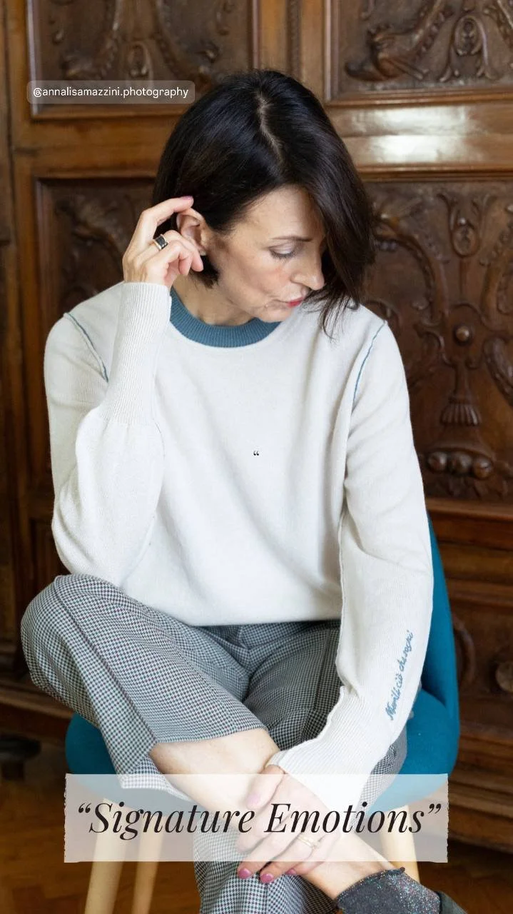 La nostra Collezione Signature Emotion è realizzata in 100% cashmere o lana merino e personalizzata con il ricamo della frase che desideri.